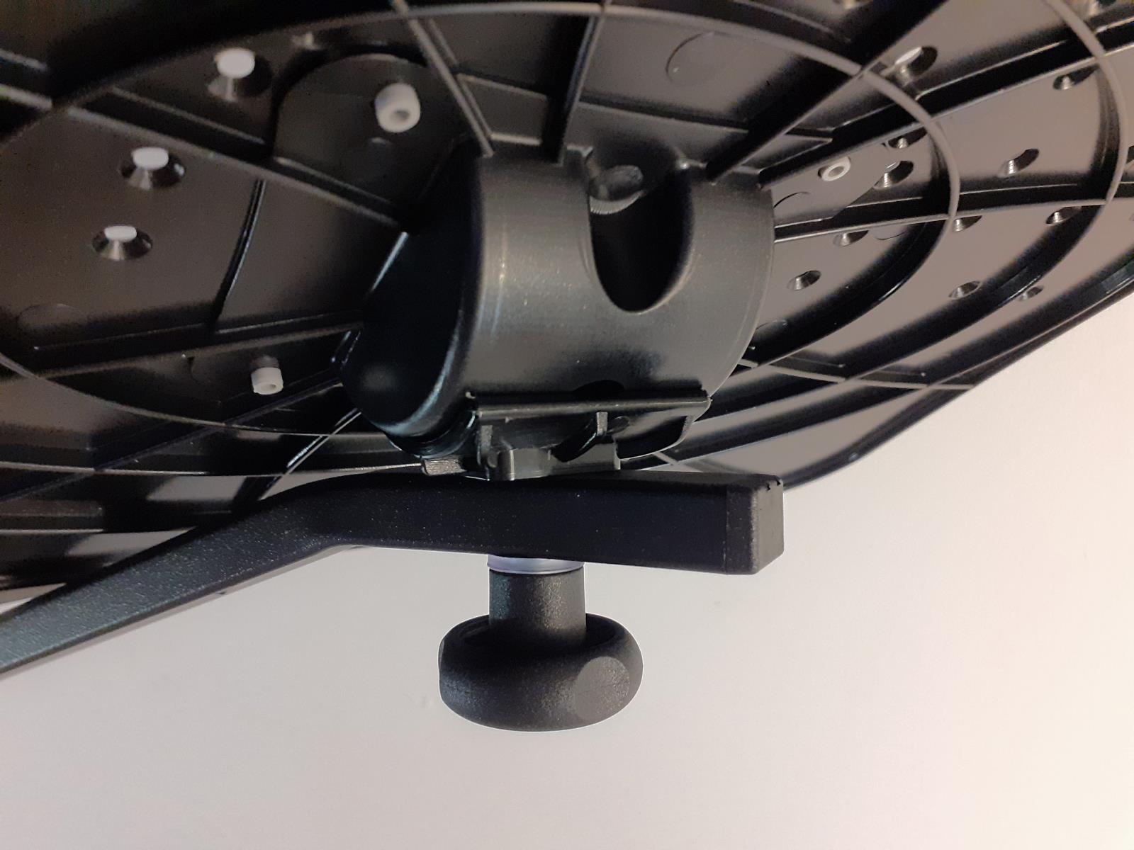 The ergonomic adjustment knobs are made of anthracite-coloured plastic or hand-turned aluminium.