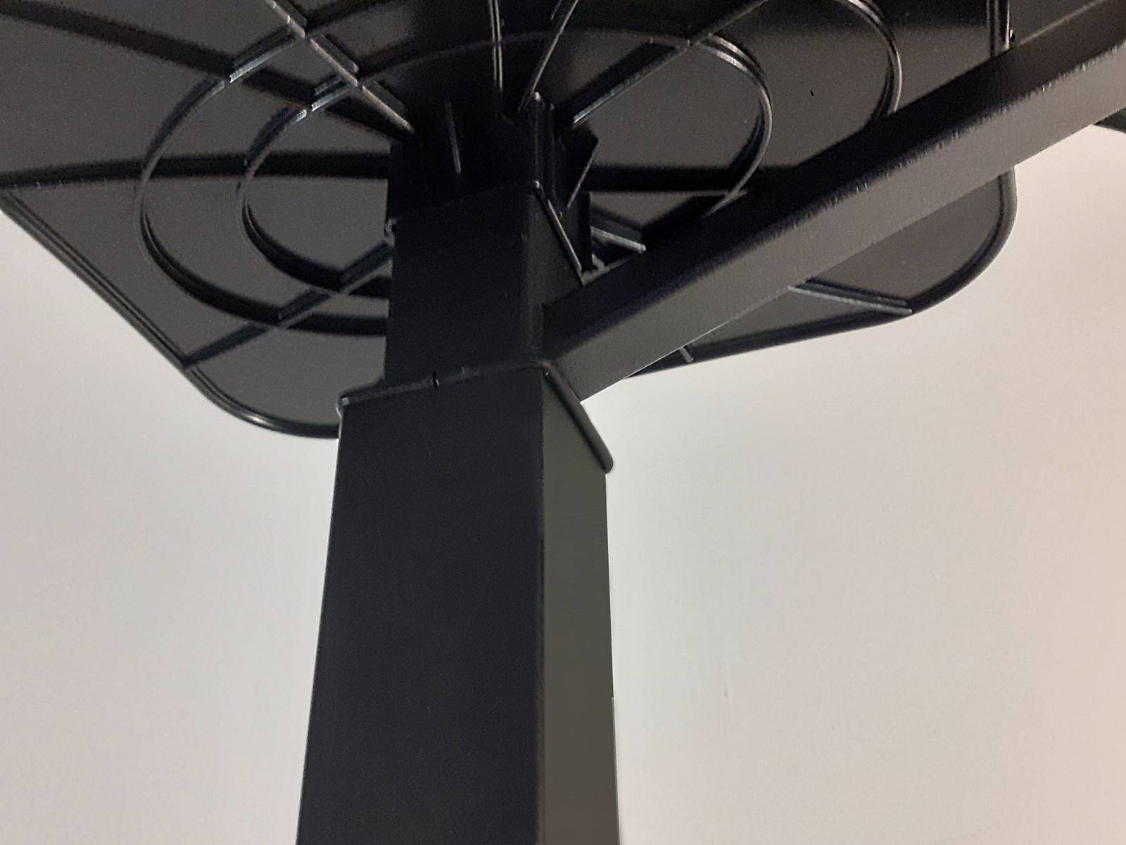 The main structure is made of powder-coated metal. The color is anthracite black.