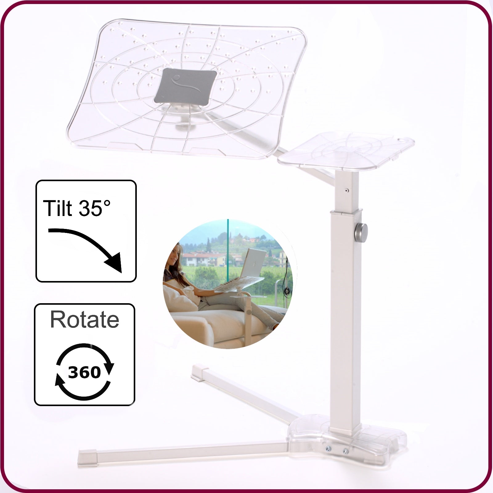 Il piatto porta-notebook ha una rotazione di 360 a 35° di inclinazione massima e consente di trovare la posizione corretta per utilizzare la tastiera in modo ergonomico.