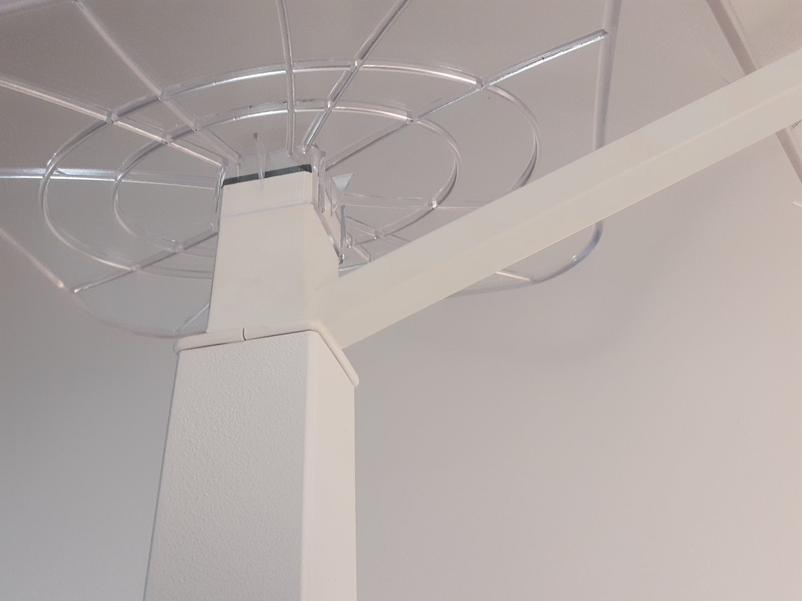 Le parti in Policarbonato trasparente conferiscono il mimetismo che offre discrezione quando lo stand non è utilizzato.